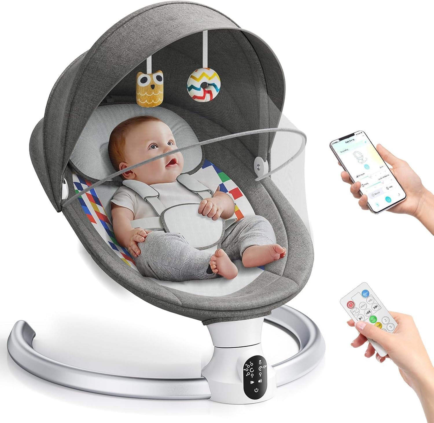 Smart motion detection automatically senses when the baby needs soothing and begins swaying gently.