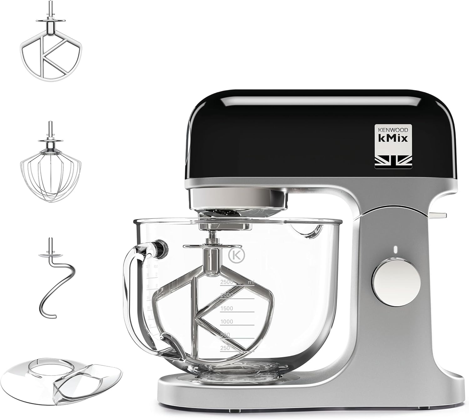 Comes with K-beater, dough hook, and whisk for versatile use.