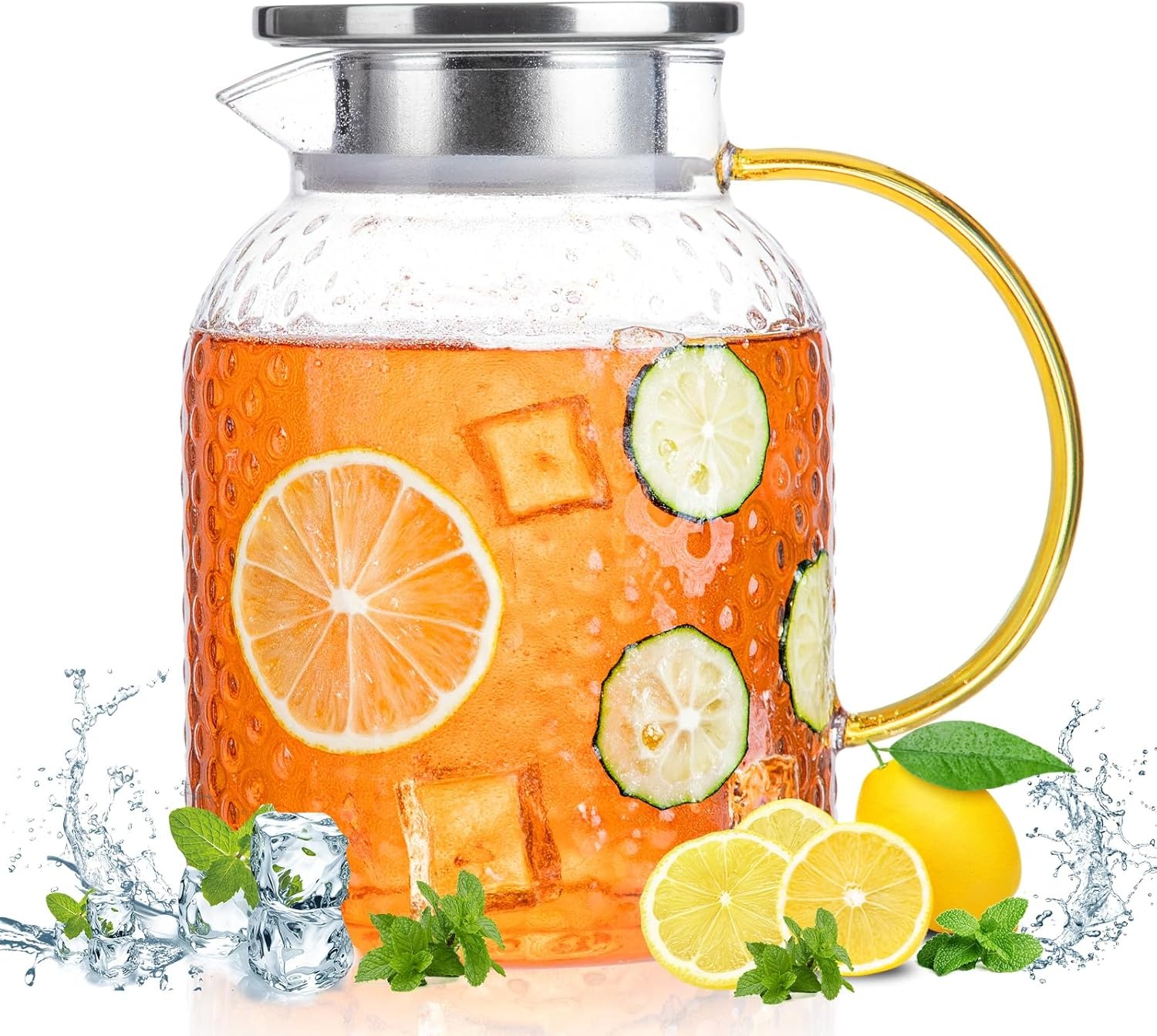 Made from durable borosilicate glass with a stainless steel lid and 1500ml capacity, perfect for serving 5 to 6 glasses of water.